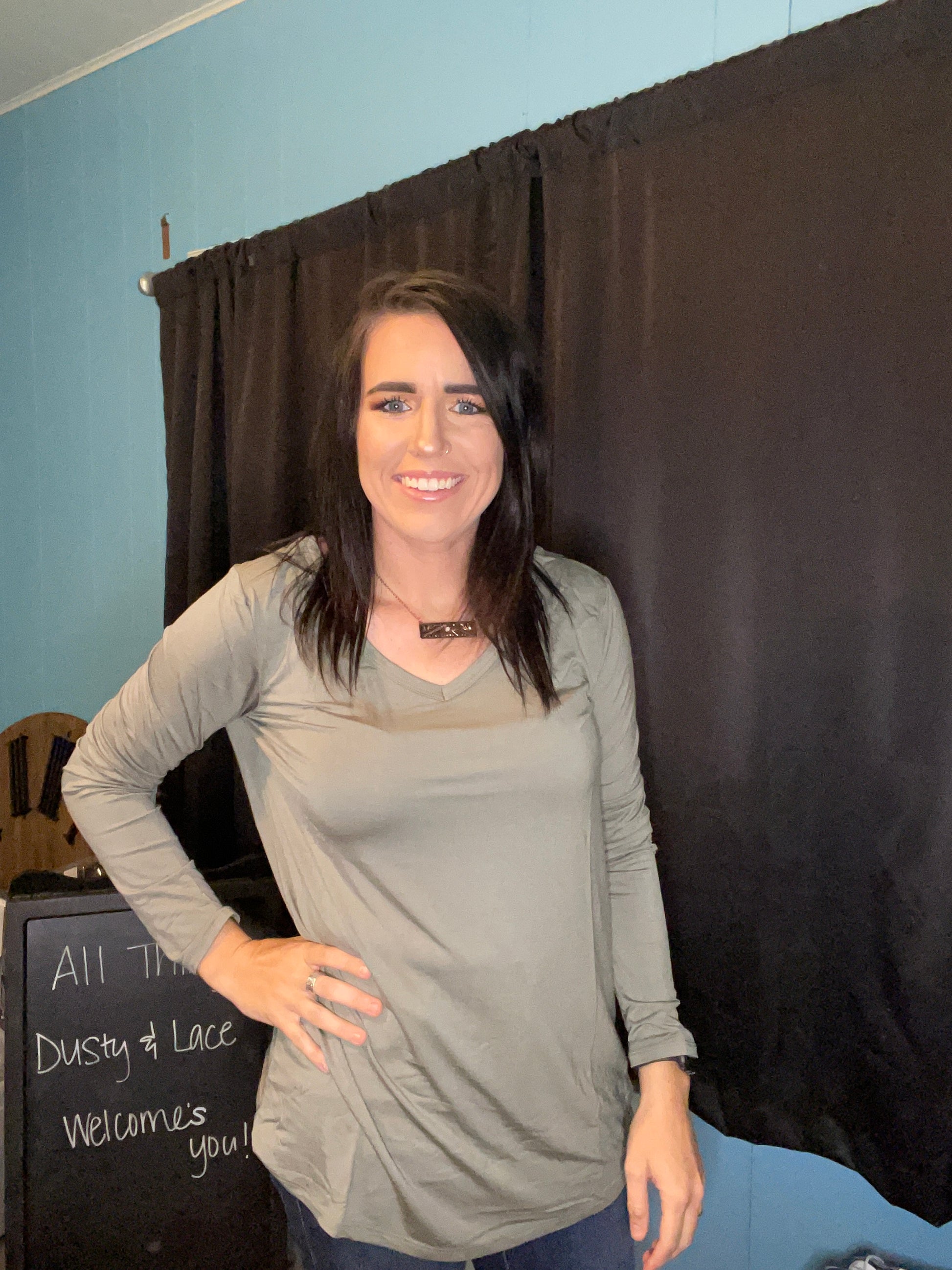 These long sleeves are so stinkin soft and the perfect fall/winter top to go under any cardigan or kimono! You could also wear them with a vest or alone, either way you’ll be looking great! True to size