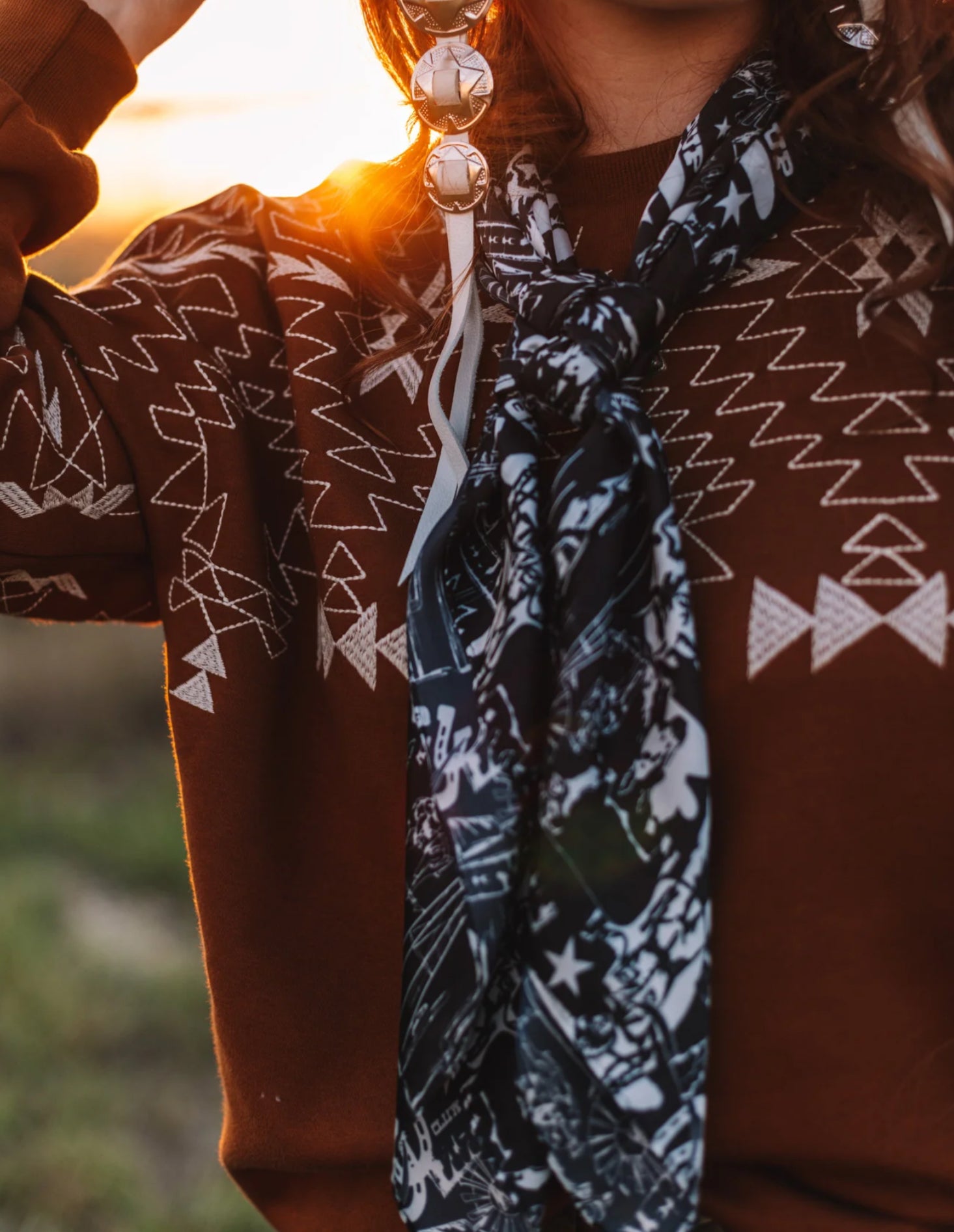 Get ready for the winter and cold with these stylish and fun wild rags. These are 34"x34". You'll be looking classy outside working cattle or inside the office.