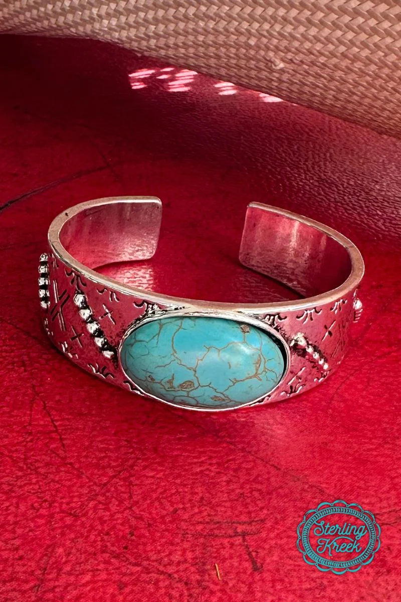 Enchant your winter with this beautiful Winter Wonderland Bracelet! Crafted with a silver engraved bracelet and a stunning turquoise oval in the middle, it's the perfect way to bring a little bit of sparkle into your life. Treat yourself - you deserve it!